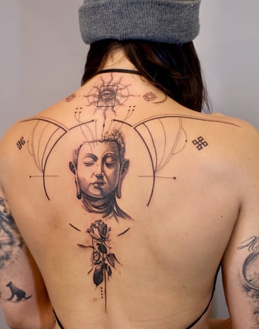 "I'm a tattoo artist who goes beyond the ordinary. My designs are unique pieces, filled with emotion and individuality. Every tattoo tells a story, and every story — every line — has a purpose."